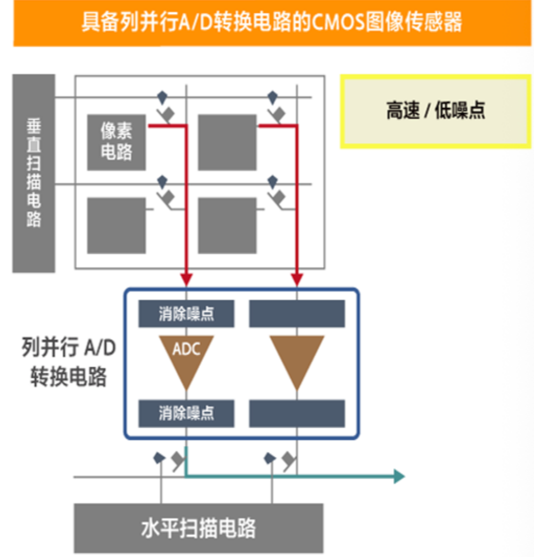 图像传感器作为数字成像系统的核心前端器件,其性能直接决定成像质量与系统响应速度。随着高分辨率、高帧率成像需求的不断提升(如4K/8K视频、高速机器视觉、自动驾驶等场景),传统单通道A/D转换架构因数据吞吐量不足、传输噪声叠加等问题,已难以满足应用需求。列并行A/D转换电路通过为像素阵列的每一列配置独立或共享的A/D转换单元,实现模拟信号的并行量化,有效突破了单通道架构的速度瓶颈,同时缩短了模拟信号传输路径,降低了噪声干扰,成为高性能CMOS图像传感器的核心解决方案之一。本文将从架构选型、核心技术设计、典型实现方案、性能优化策略及应用前景等方面,全面阐述图像传感器芯片列并行A/D转换电路的解决方案。